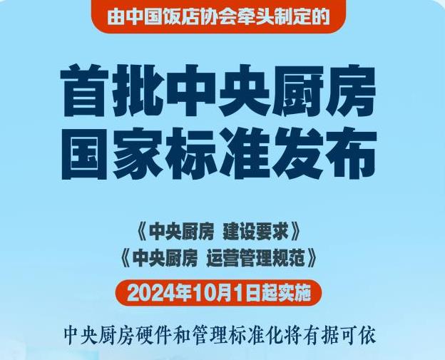 經國家市場監(jiān)督管理總局(國家標準化管理委員會)批準,由中國飯店協(xié)會牽頭制定的首批中央廚房推薦性國家標準——《中央廚房 建設要求》《中央廚房 運營管理規(guī)范》已于近日獲批發(fā)布,2024年10月1日起實施。